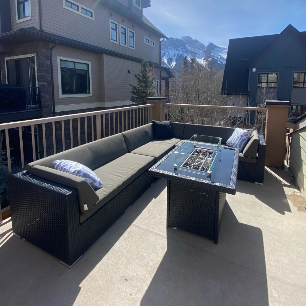 Cozy Patio Transformation with Custom Sectional in Canmore, AB