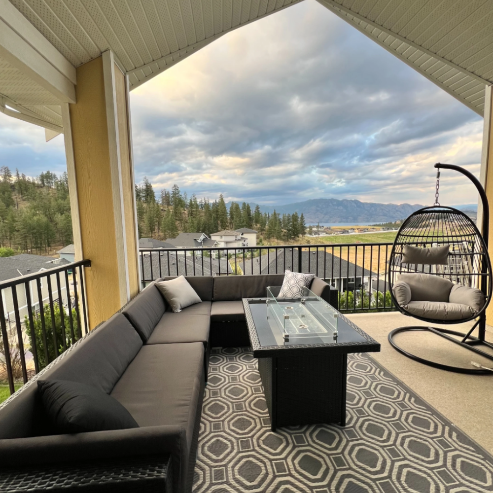 We had the pleasure of upgrading a spacious patio in West Kelowna, B.C., with a custom sectional, fire table, and swing chair. Working closely with the homeowners, we helped them create a stylish yet functional outdoor retreat perfect for relaxation and hosting. The new setup not only enhances the comfort of their outdoor living space but also adds a touch of elegance. We're proud to have helped craft another inviting space where family and friends can gather